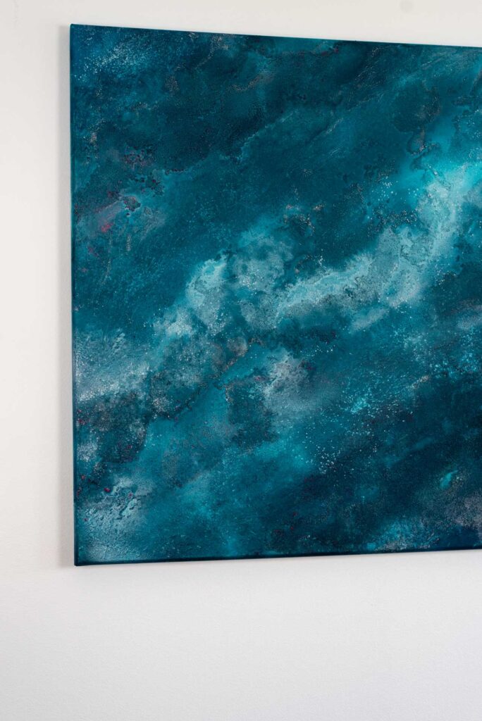 Główną inspiracją do namalowania tego obrazu była głębia oceanu i jego tajemnice jakie w niej skrywa. Obraz wykonany farbami akrylowymi w połączeniu ze strukturą (własna technika) na płótnie. Został zabezpieczony werniksem matowym.