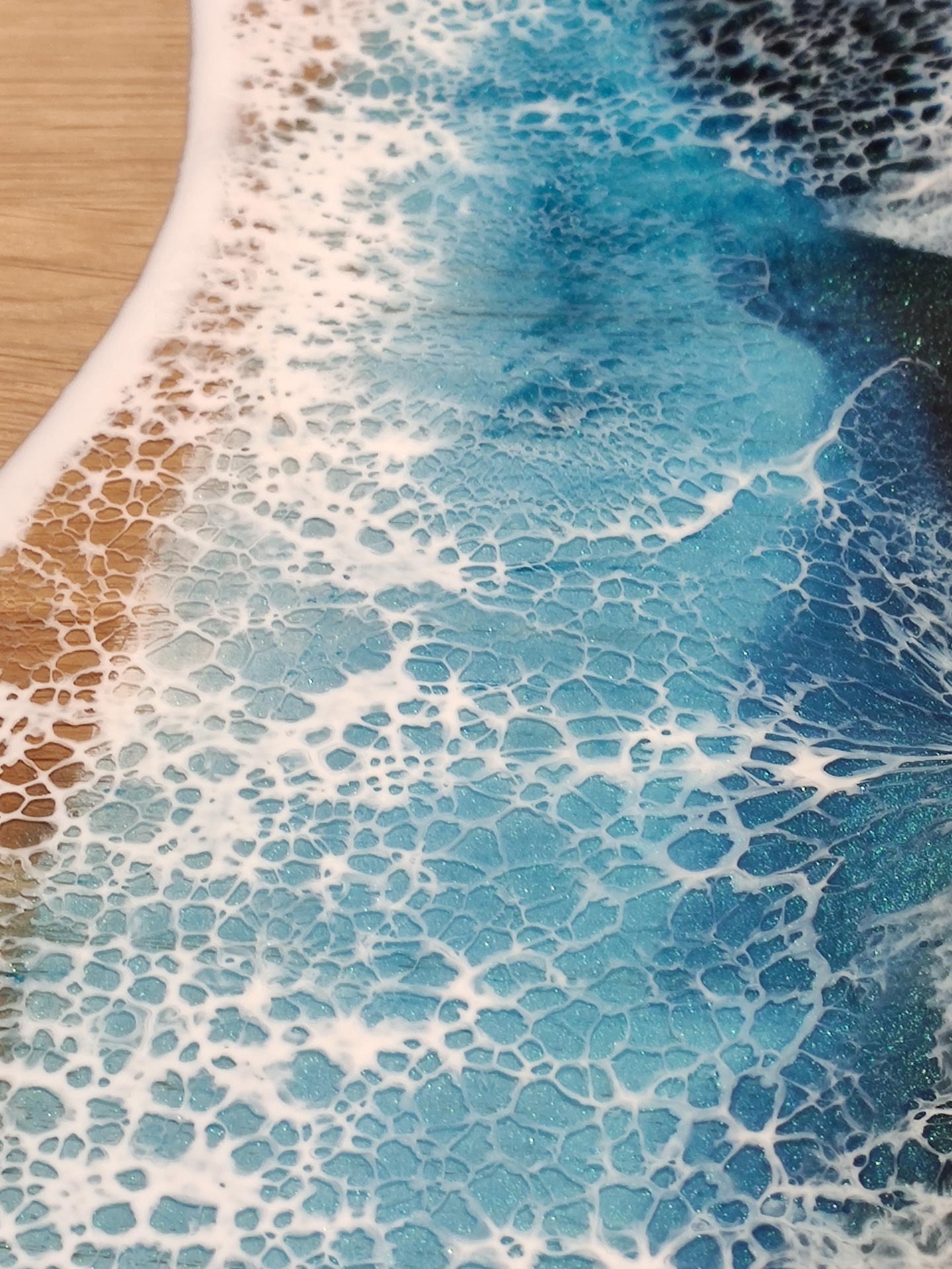- Wylaniem przeze mnie żywicy epoksydowej na wybranym przez Ciebie blacie, na jego całości / połowie / boku / bokach / przekątnej / przekątnych. Mogę wylać fale lub każdy inny wzór. Wybierz kolory lub/i odcienie. W miejscach niewylanych żywicą zabezpieczam olejem lnianym czyli 100% naturalnym impregnatem na bazie roślinnej. Zaprojektuj sam swój wymarzony blat – wyślij zdjęcia Twojej inspiracji + opis. Jeśli potrzebujesz porady – wyślij dodatkowo zdjęcia pomieszczenia. Przygotuję projekt z wyceną.